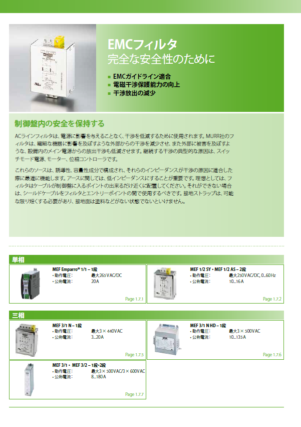 Murrelektronik社のEMCフィルタには、コンパクトで使いやすい「MEFシリーズ」と、高耐久の「EMPARROシリーズ」があります。
