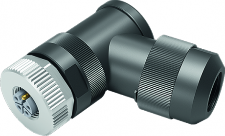 M12, シリーズ 823, オートメーションテクノロジー- パワーサプライとパワーサプライbinder|M12-L メス アングルコネクタ, 極数: 4+FE, 8.0 - 13.0 mm, アンシールド, スクリュークランプ, IP67, UL, M12x1.0, 電源用, 99 0640 58 05