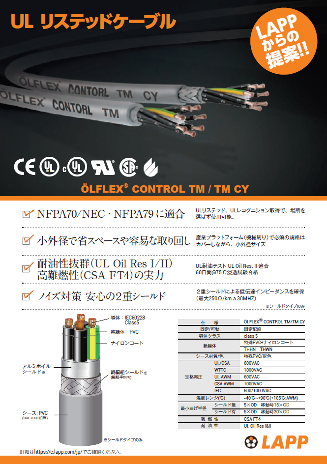 LAPP社のケーブルならコレを検討! 各種ケーブルの主な特徴と用途