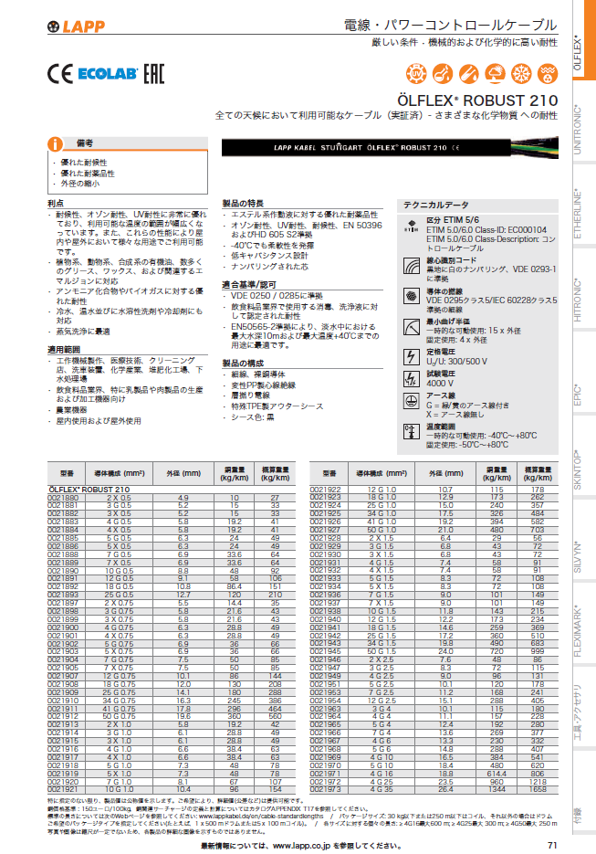〈OLFLEX ROBUST 210 製品ページはここをクリック〉