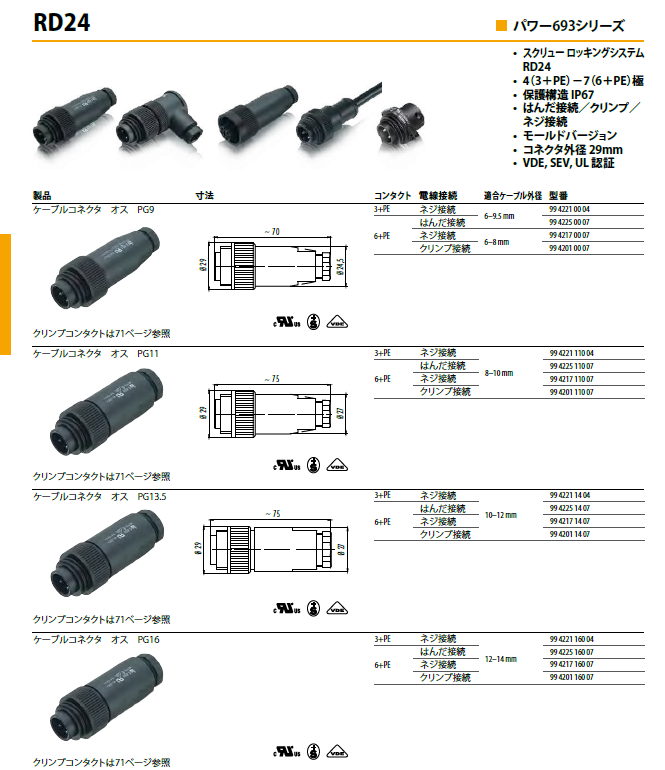 極小サイズ~大きいサイズまで様々な大きさのコネクタを取り扱っているbinder社ですが、その製品の中でも大変好評をいただいている「RD24」(パワー693シリーズ)について改めてご紹介したいと思います。