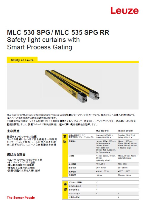 Leuze(ロイツェ)のセーフティライトカーテン「MLC 530 SPG (Smart Process Gating)」は、従来のミューティングセンサが不要で導入することができます。