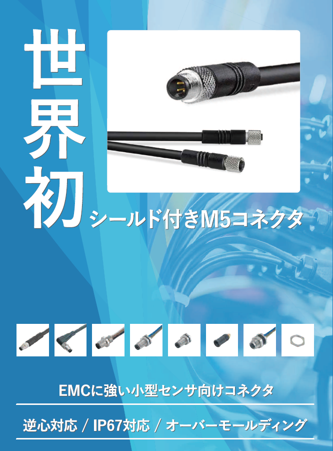 M5タイプのセンサ用コネクタで、なおかつシールド付きの製品は、今後さまざまな分野で重宝されると思います。